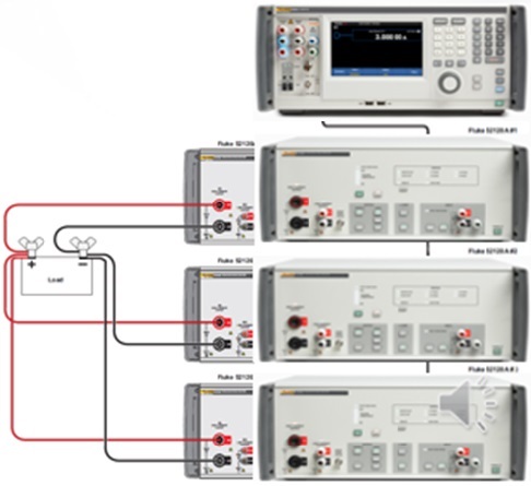 1、52120A跨阻放大器通过专用接口连接到5560A,可实现1至3个单元的闭环控制,有效地将电流范围从120A扩展到360A。结合八位半万用表8588A和标准电流传感器 (DCCT),可满足直流电 (DCI)、交流电 (ACI) 和直流电能的检定要求。