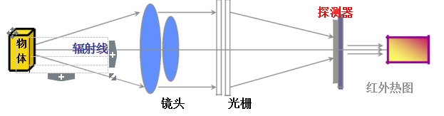 光学器件将物体发出的红外辐射聚集到探测器上,探测器把入射的辐射转换成电信号,进而被处理成可见图像,即热图。