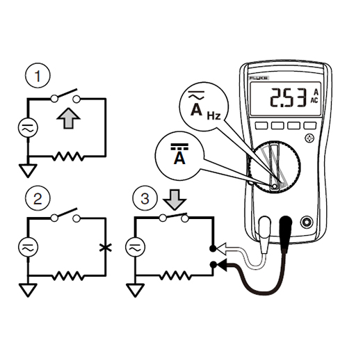 电流测量:红色导线插入A端子,黑色插入COM端子,功能开关旋转至ACA或DCA档位;关闭电路电源,断开电路,将FLUKE117C串联接入;开启电源,显示屏显示电流读数。测量20A过载电流时,连续测量时间不可超过30秒,之后需暂停10分钟再使用。