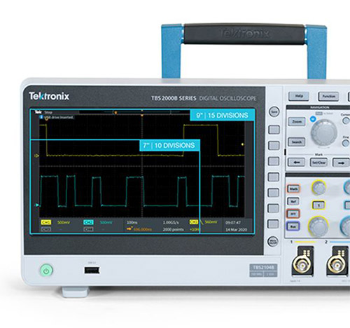 TBS2000B示波器为嵌入式设计工程师提供9英寸大屏幕,15个水平网格,可显示的水平信号增加50%。