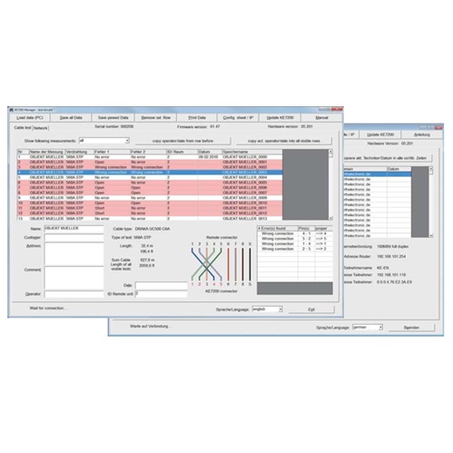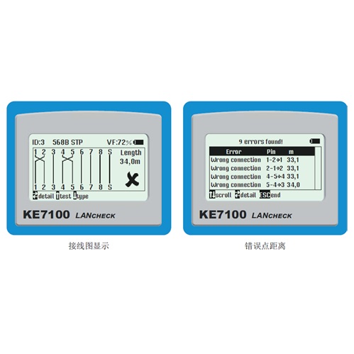 (一)核心功能解析KURTH KE7100以太网性能测试仪的功能设计聚焦实用性和便捷性,核心功能覆盖网络测试的主要场景。线缆测试功能不仅能快速检测连通性,还能精准定位开路、短路等故障点,屏幕显示的接线图可直观呈现线对连接状态,串绕、反接等错误一目了然,无需技术人员具备复杂的网络知识即可解读。