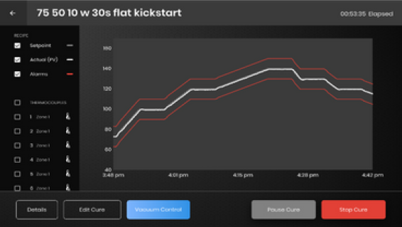 安全测试原理贯穿整个运行过程,形成多重防护体系。电气安全方面,接地故障断路器实时监测火线与零线的电流差值,当差值超过6mA时立即切断电源,防范触电风险;UL认证的电气元件则保障长期运行的绝缘性能。工艺安全方面,主机内置温度与真空超限阈值,当温度超过设定值5℃或真空压力低于25inHg时,立即触发声光报警,同时切断加热器电源并保持真空状态,防止材料报废或安全事故。操作安全方面,多级密码保护将用户权限分为操作员、技术员、管理员三级,避免非授权人员修改关键工艺参数(如固化温度、真空压力),保障工艺一致性。
