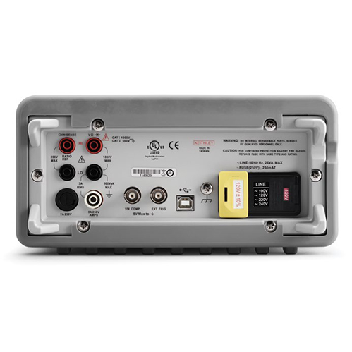 2100系列采用紧凑型台置设计,机身配备防滑提手与橡胶防撞边框,重量仅1.8kg,兼顾实验室固定使用与现场测试需求。硬件核心采用高精度积分型A/D转换器,配合吉时利专利的“零漂补偿技术”,有效抑制温漂与噪声对测量结果的影响——在0-40℃工作温度范围内,精度漂移控制在0.0005%/℃以内。安全性能方面,仪器通过CE、UL认证,符合EN61010-1与UL61010-1:2004安全标准,测量端子绝缘强度达1000VAC,可耐受250VCATII过电压冲击。